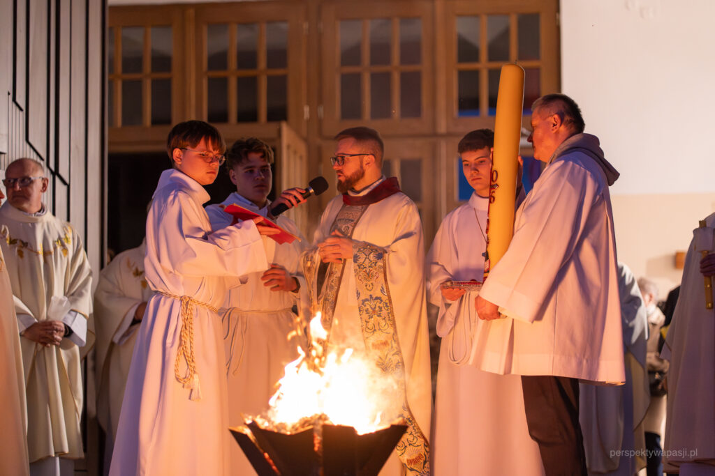 W sobotni wieczór zgromadziliśmy się w naszej świątyni na najważniejszej liturgii całego roku – Wigilii Paschalnej. Przewodniczył jej o. Tomasz, wikariusz naszej parafii.