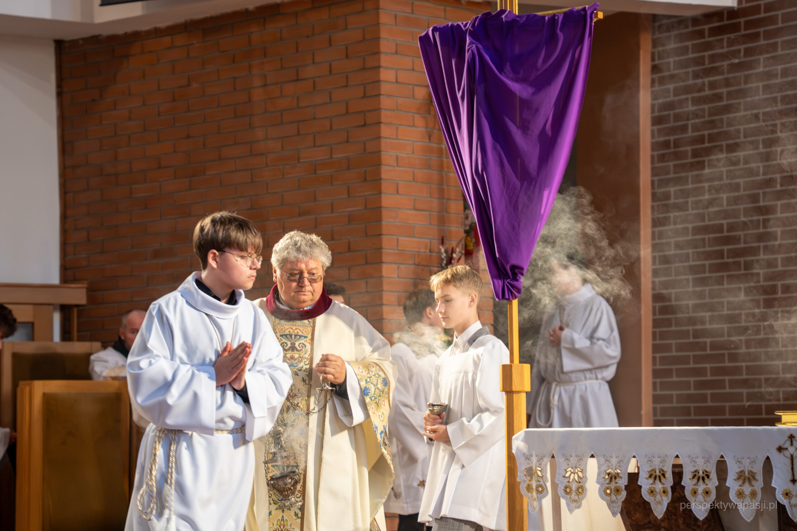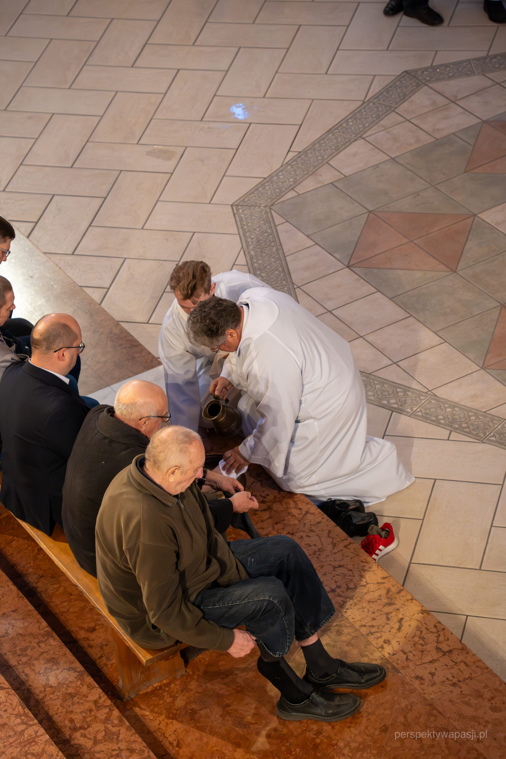 Centralnym momentem liturgii był obrzęd obmycia nóg, przypominający gest Jezusa, który uniżył się, aby służyć. To znak miłości pokornej i konkretnej – takiej, która nie zatrzymuje się na słowach, ale wyraża się w czynie.